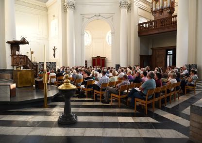 Wie wil kan vanaf 19u30 in alle rust en stilte genieten van de mooie klanken van het Le Picard-orgel met Paul Van Hooff (orgel) en Odette Meyers (fluit). Na de getuigenis, die aanvat om 20u en maximaal een half uur duurt, wordt in de Pandtuin gezellig nagekaart bij een drankje. De avond is helemaal gratis. Heb je ervan genoten, dan kan je een vrijblijvende gift doen.