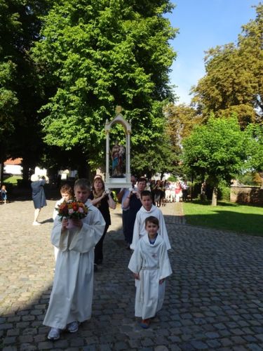 Hoogfeest Maria Tenhemelopneming met processie en inhuldiging geschenk Vlierbeekse gemeenschap