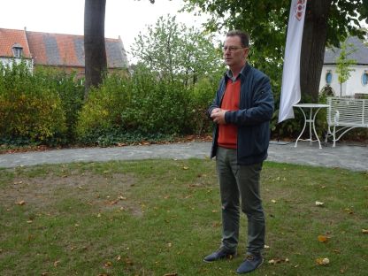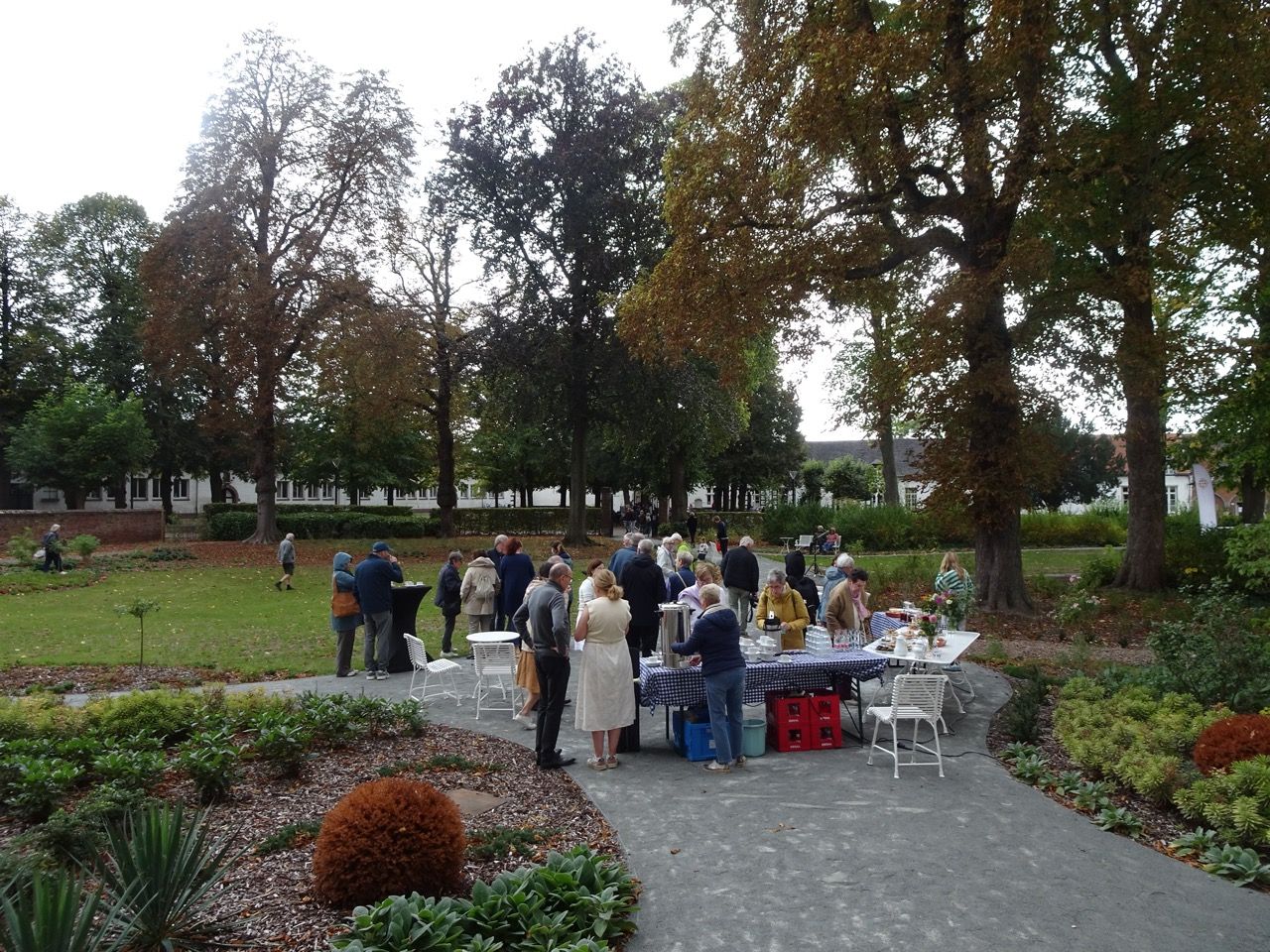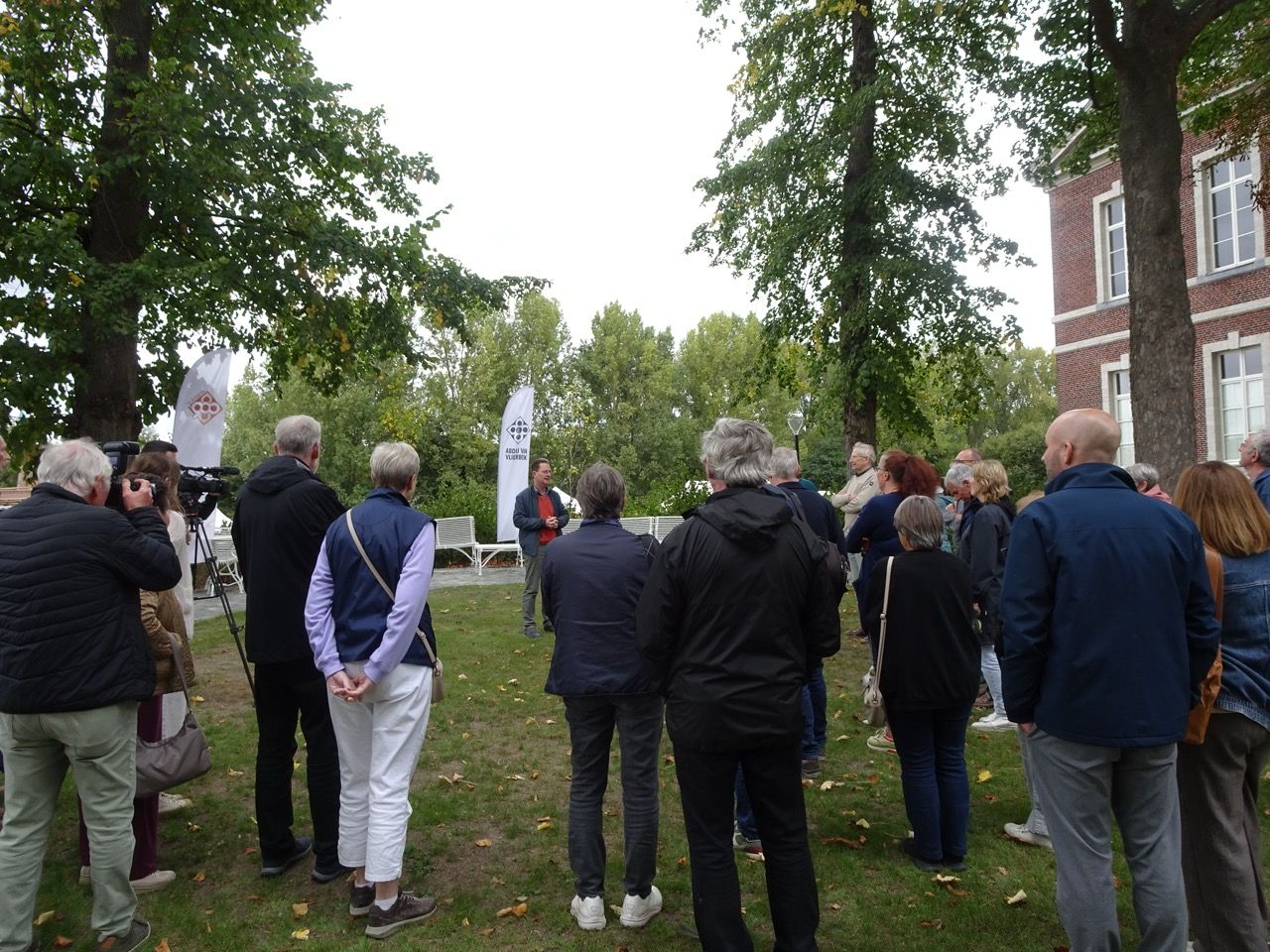 Officiële inhuldiging Engelsche Hof met toespraken door schepenen Dirk Vansina en Christophe Stockman