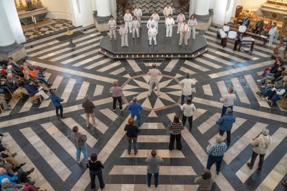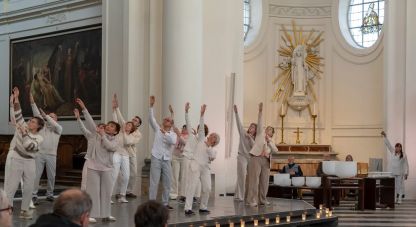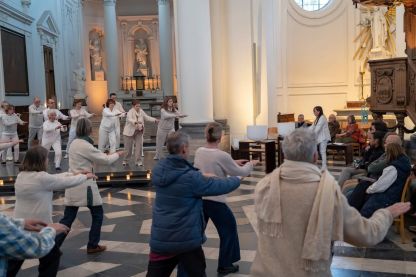 Jonny Kiggen staat in voor de tai chi, samen met Rita Raye (klankschalen), Kris Verhelst (orgel), Peter Van Heyghen (blokfluit) en Steve Dugardin (altus).
