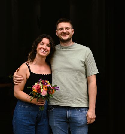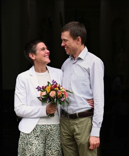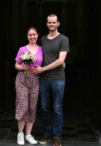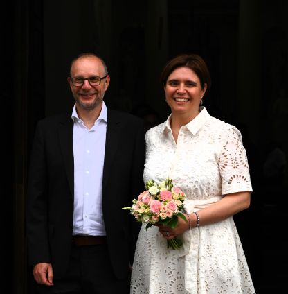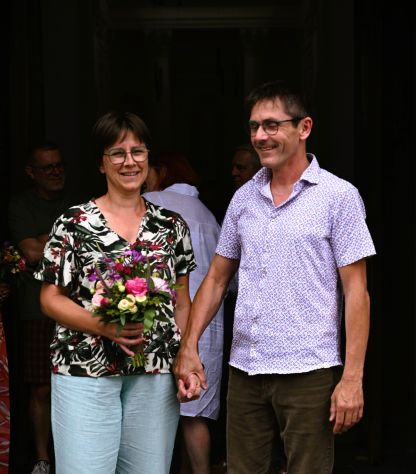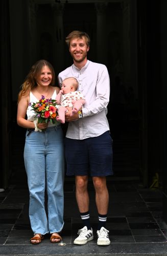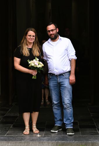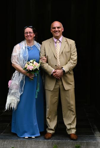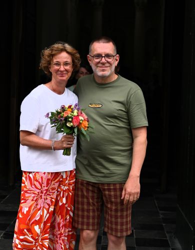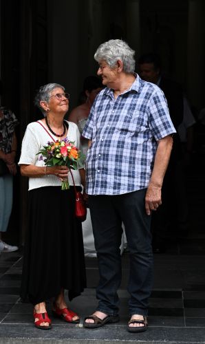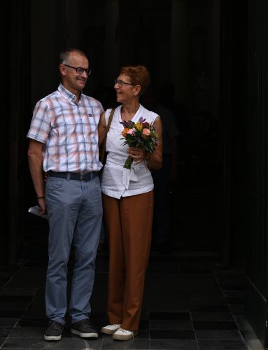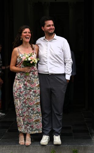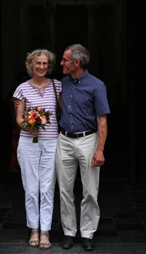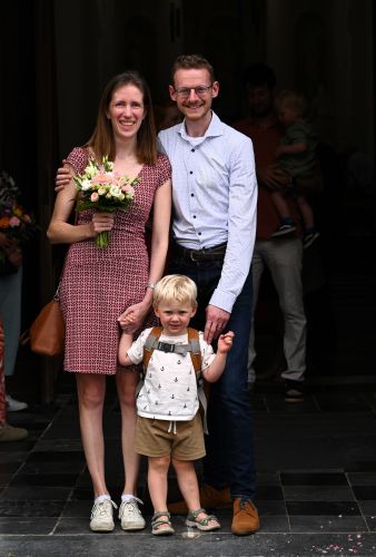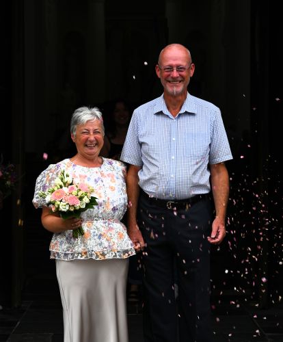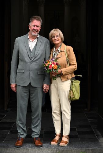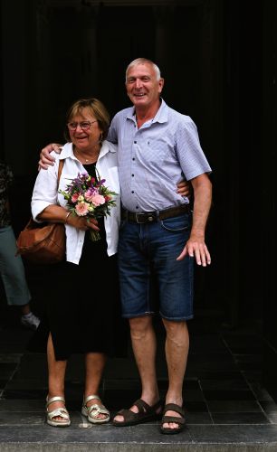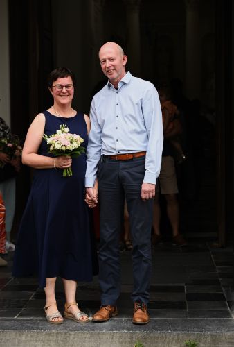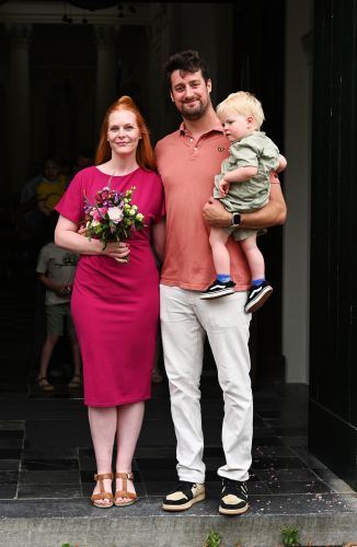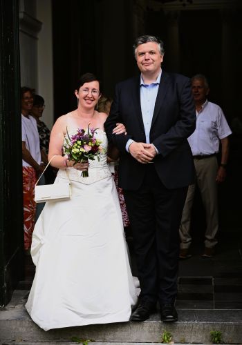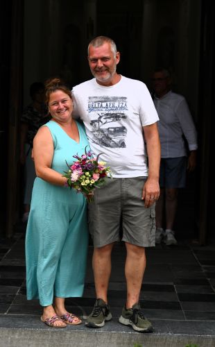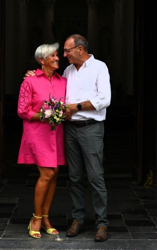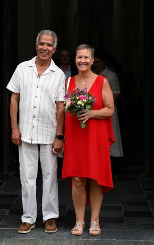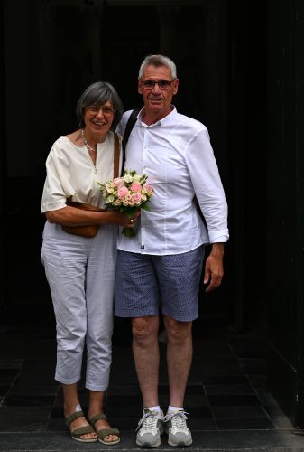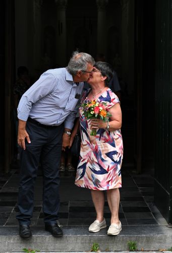 En na de viering werd er een nieuwe huwelijksfoto gemaakt.