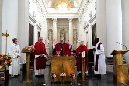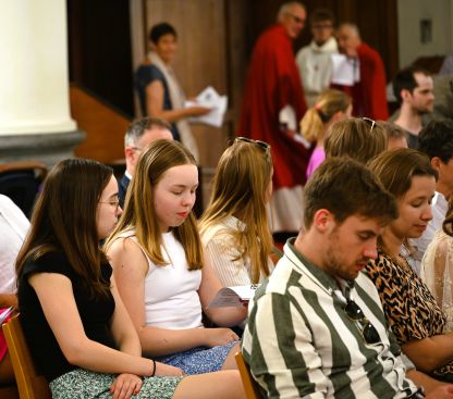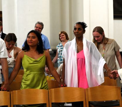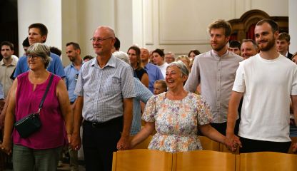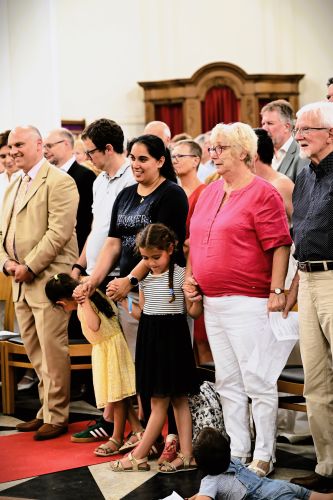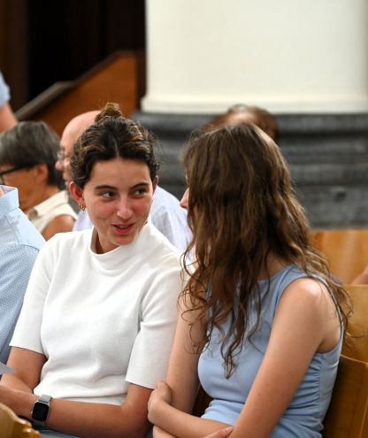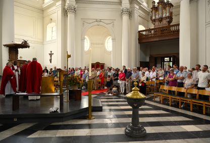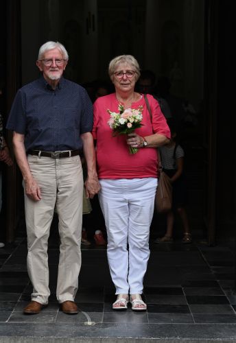 We nodigden een aantal priesters uit die in Vlierbeek al voorgingen in huwelijksvieringen. Priester Steven Wielandts, deken Patrick Maervoet, priester Rony Timmermans en priester AnthonyJude Okafor gingen voor. De koppels vernieuwden hun trouwbelofte. De kerk liep vol met alle generaties. Er waren grootouders met hun kinderen die ook trouwden in Vlierbeek en zij namen op hun beurt hun kinderen weer mee.